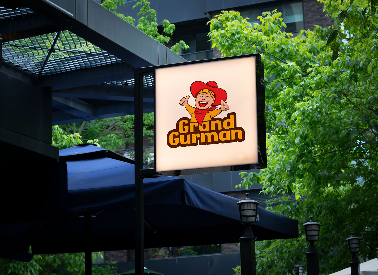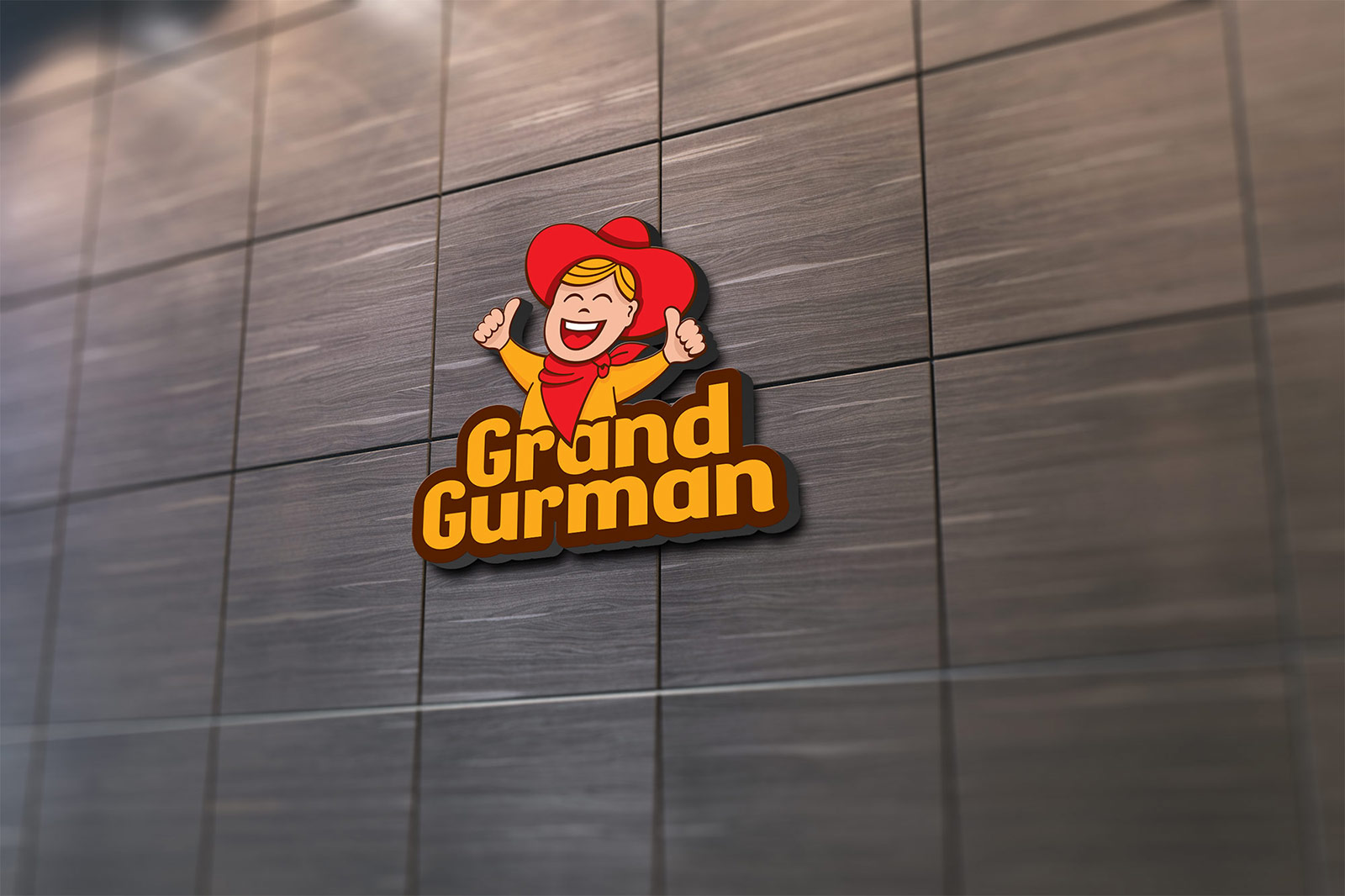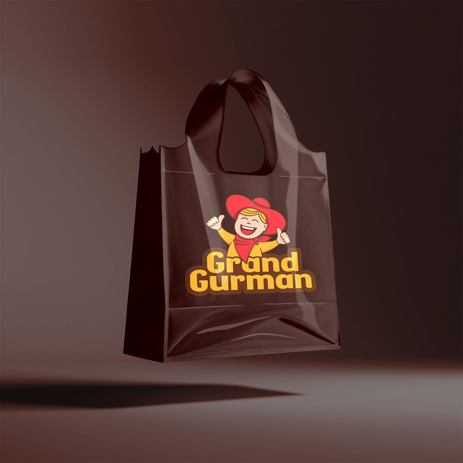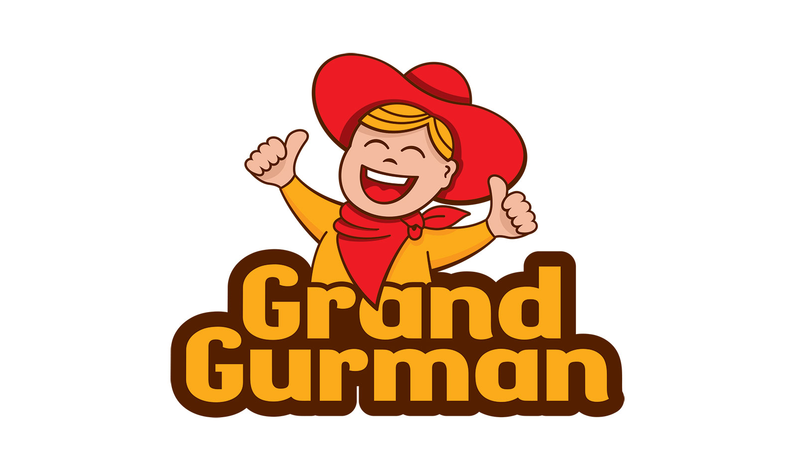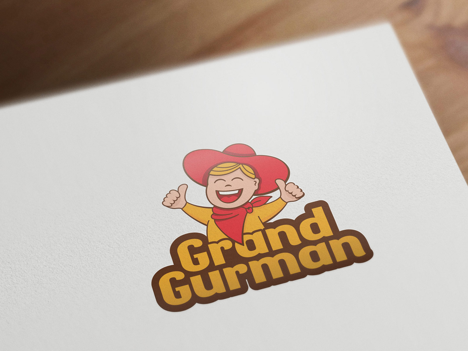 После детального обсуждения различных вариантов Заказчик утвердил нижеприведенный логотип, выполненный в виде веселого и беззаботного персонажа. Шрифтовое написание названия “GrandGurman” разработано дизайнерами нашей студии.