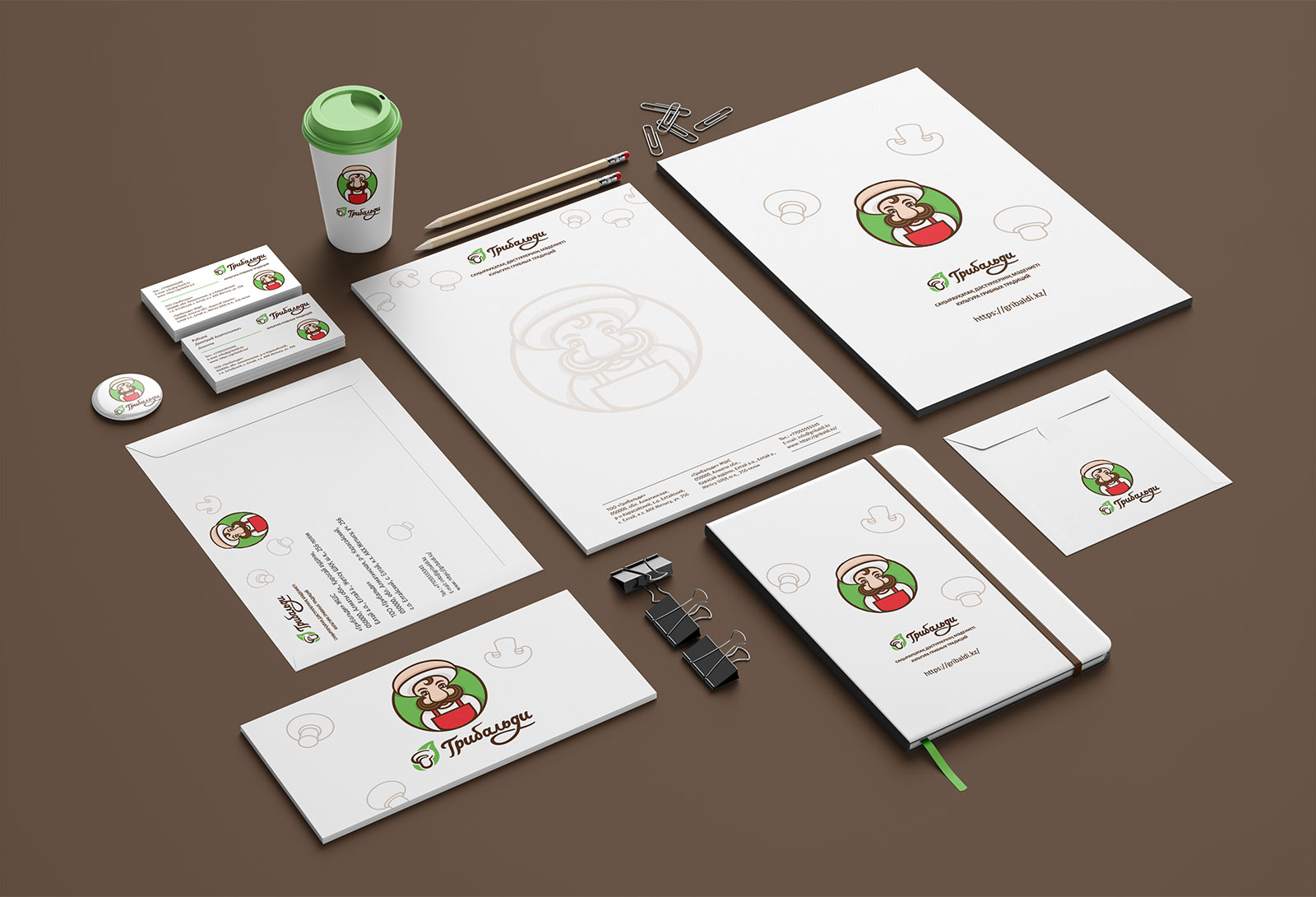 Разработка названия, логотипа, персонажа, слогана, фирменного стиля и бренд бука для агрокомлекса по выращиванию шампиньонов (Казахстан).