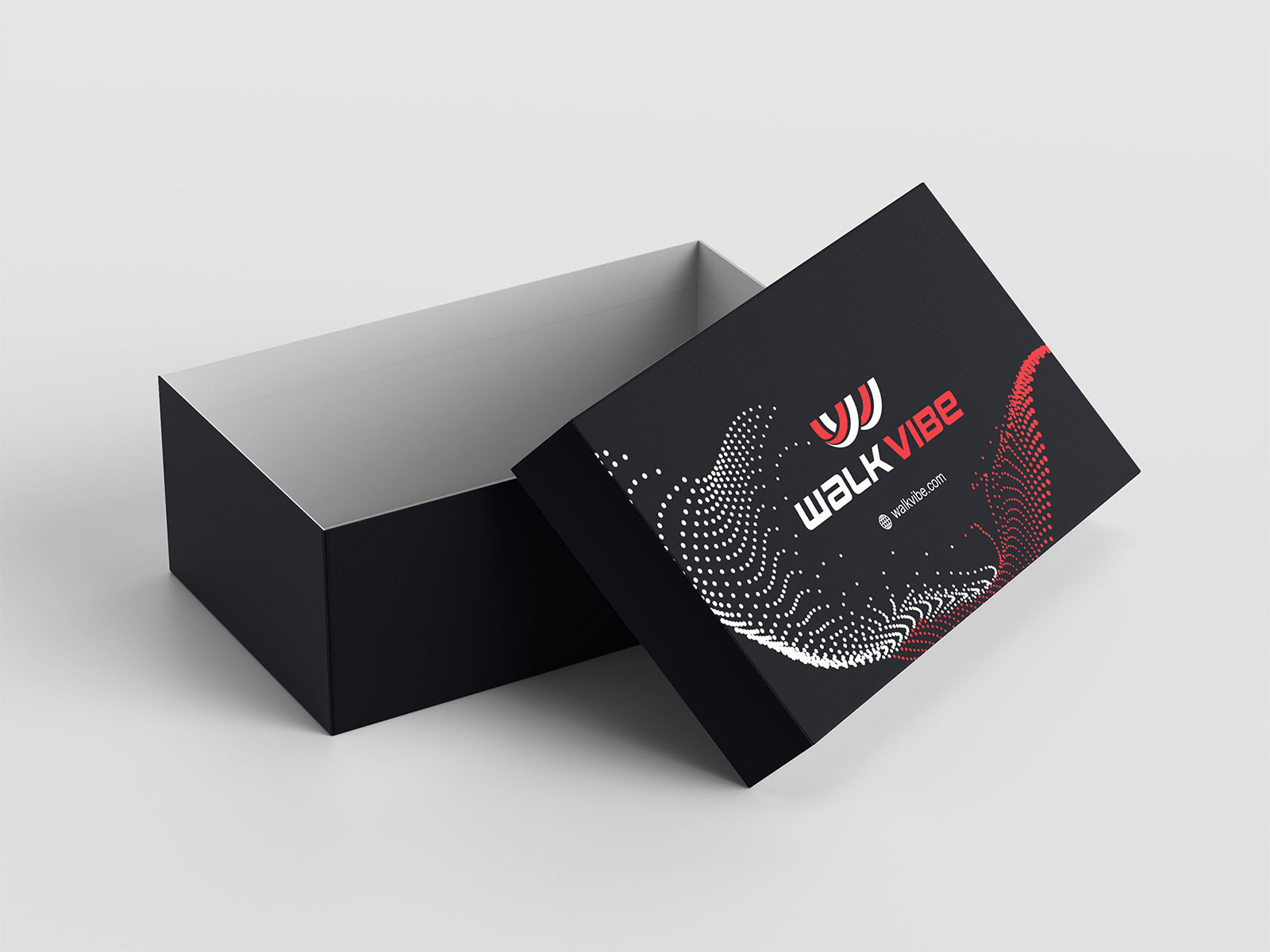 Шрифтовое написание названия “WalkVibe” разработано дизайнерами нашей студии и выполнено в строгом стиле.