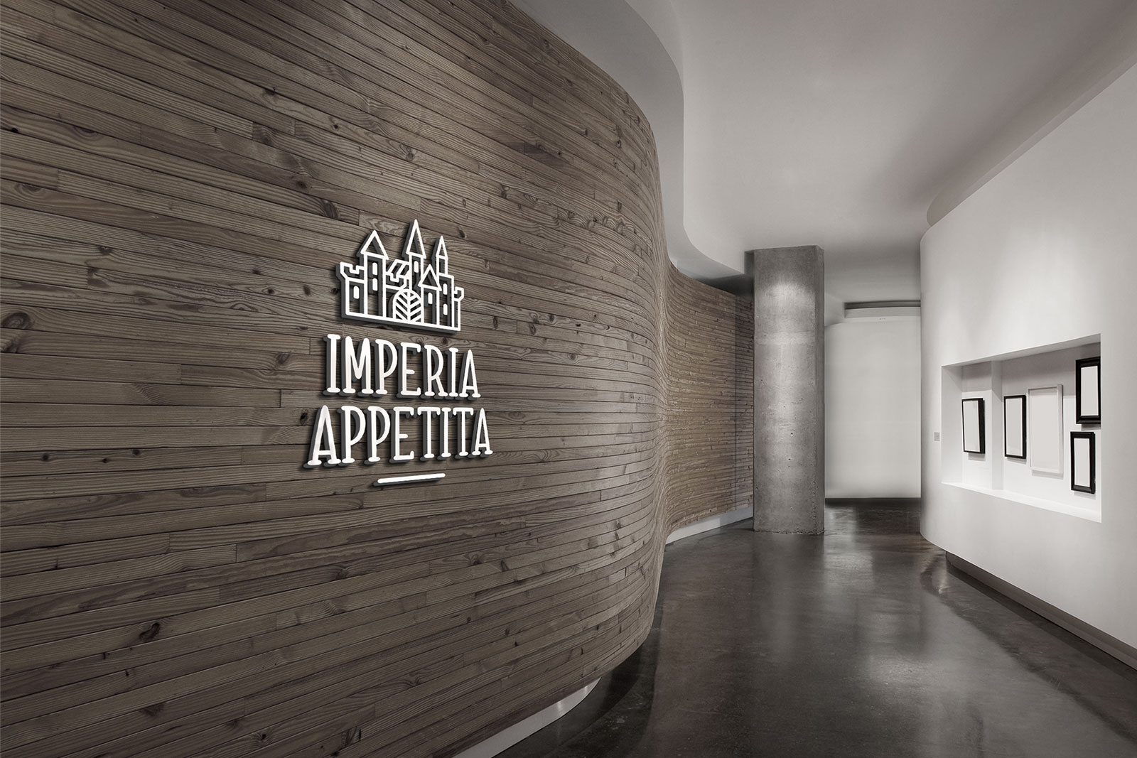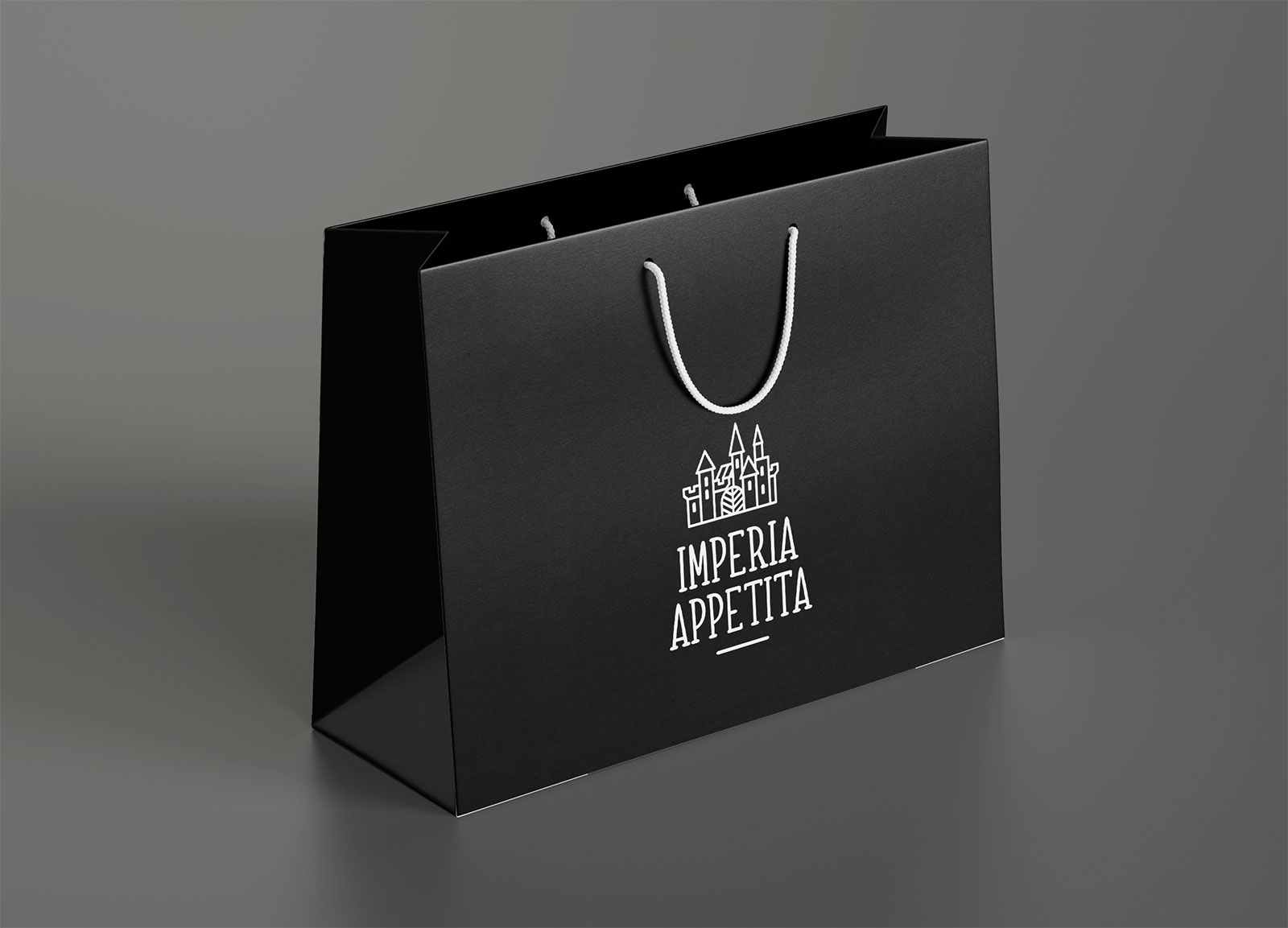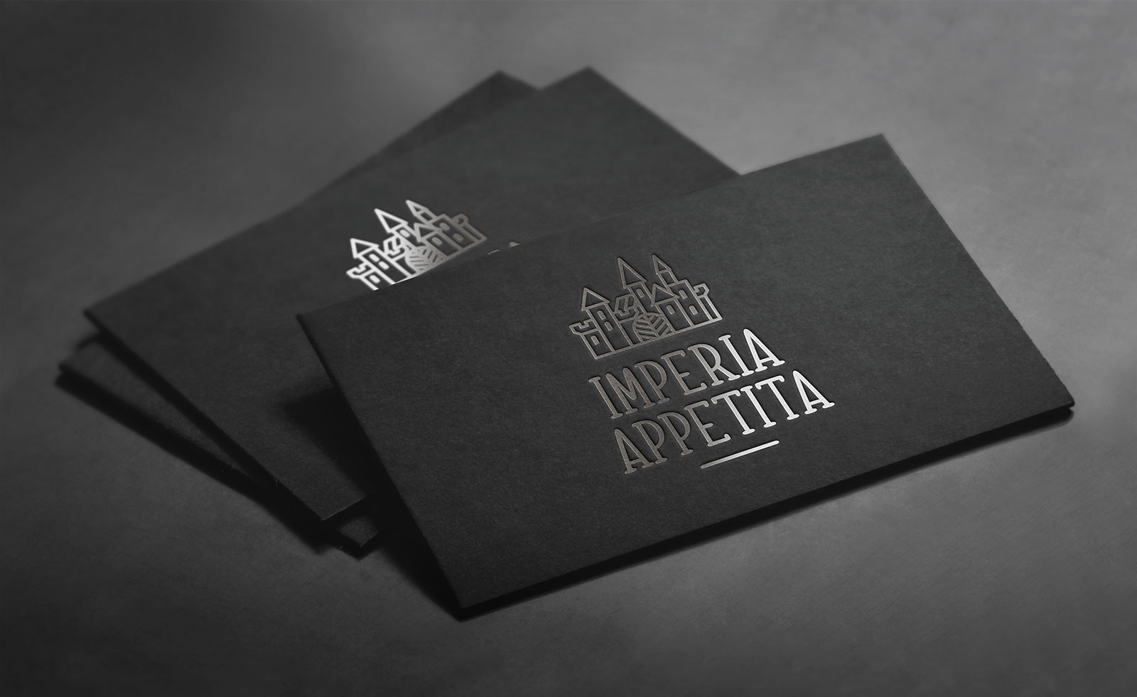 Шрифтовое написание названия “IMPERIA APPETITA” разработано дизайнерами нашей студии и выполнено в строгом стиле.