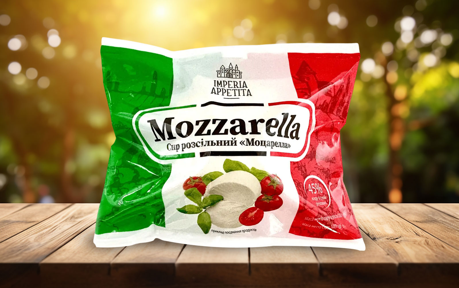 Для нового продукта: свежей моцареллы премиального качества — был создан яркий, эмоциональный дизайн упаковки, сочетающий в себе национальные мотивы, подлинность и аппетитный вид.