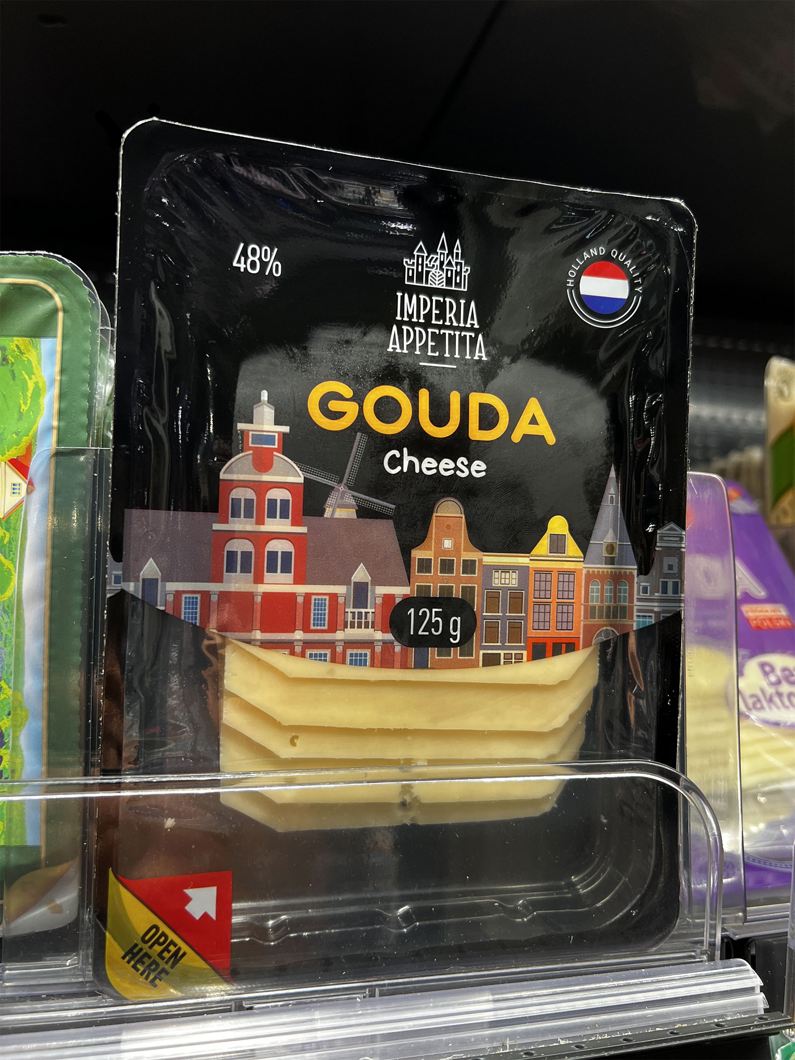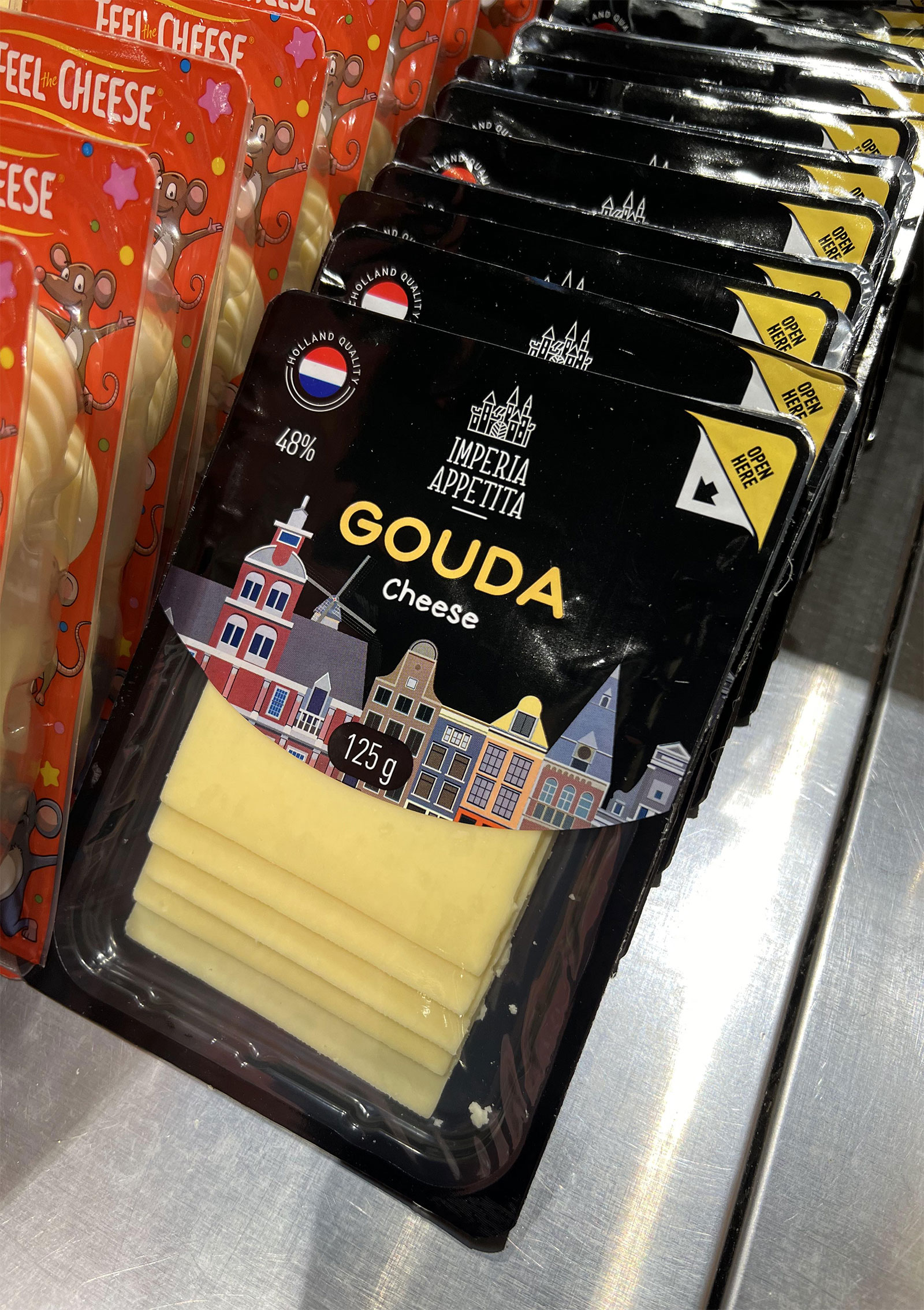 Эти иллюстрации не только украшают этикетку, но и рассказывают визуальную историю происхождения сыра, создавая атмосферу путешествия по Европе по вкусу. Такой подход к дизайну позволяет легко отличить каждый вид сыра на полке, придает упаковке узнаваемости и формирует эмоциональную связь с продуктом.