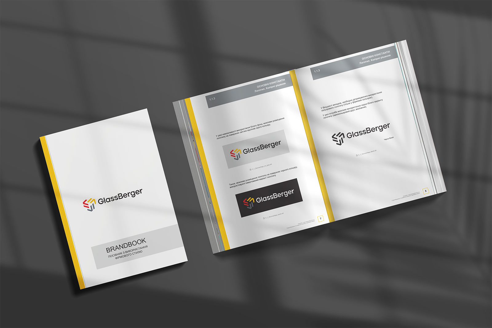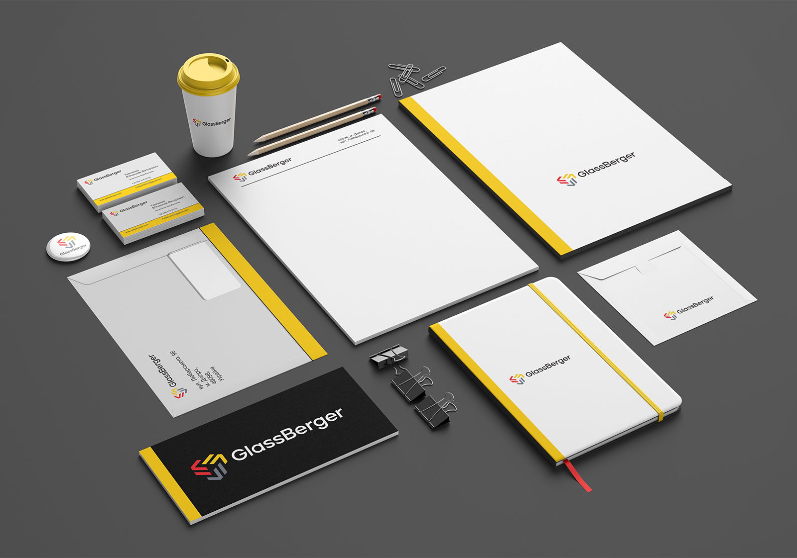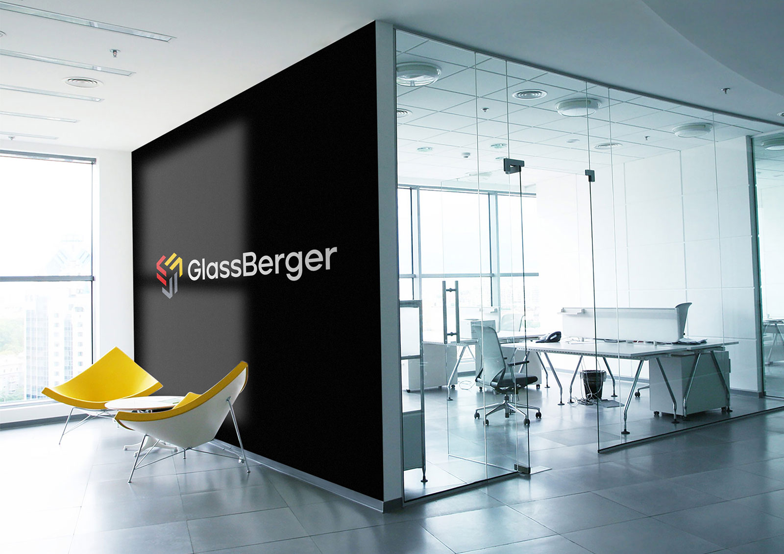 Шрифтовое написание названия “GlassBerger” разработано дизайнерами нашей студии и выполнено в строгом стиле.