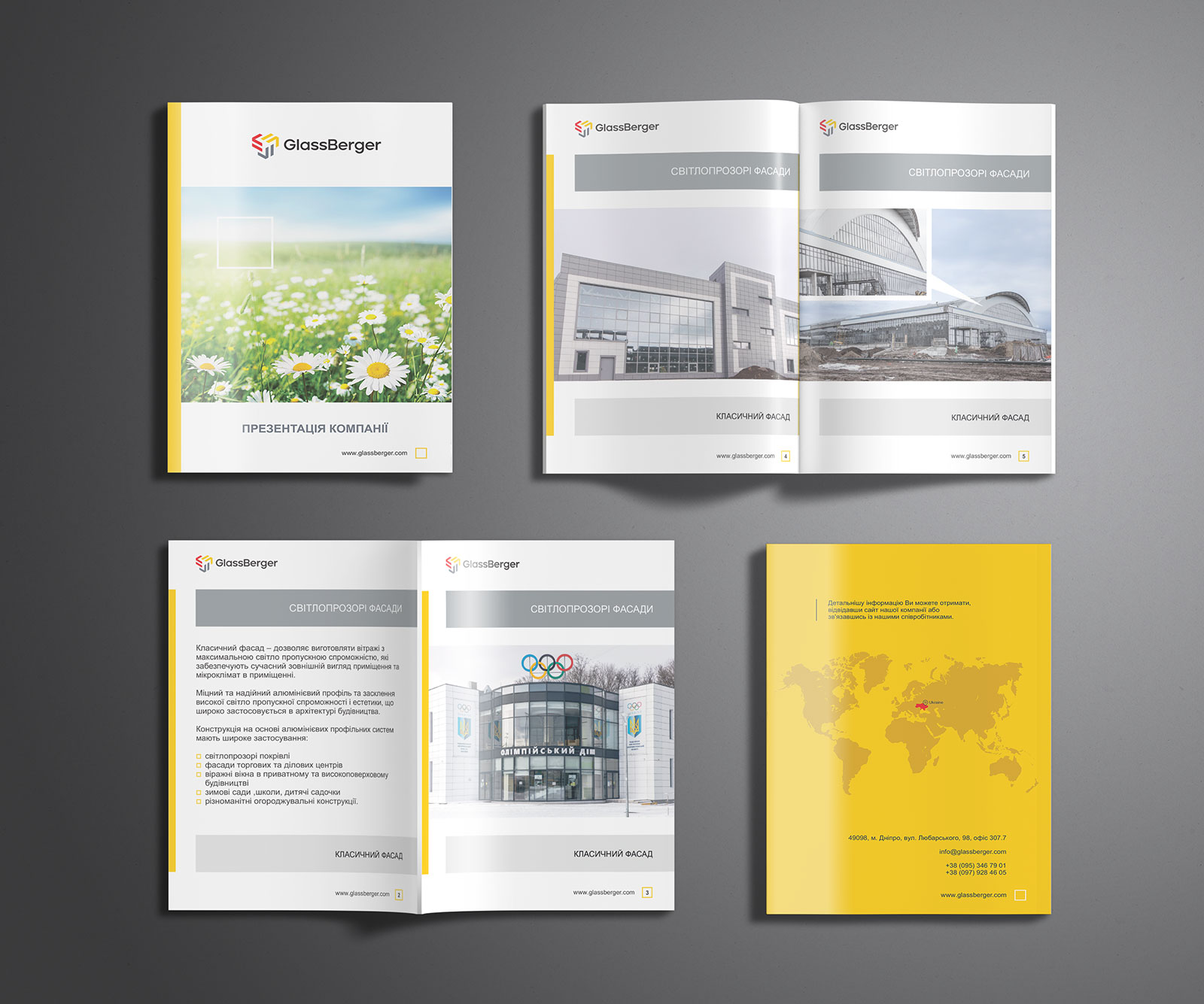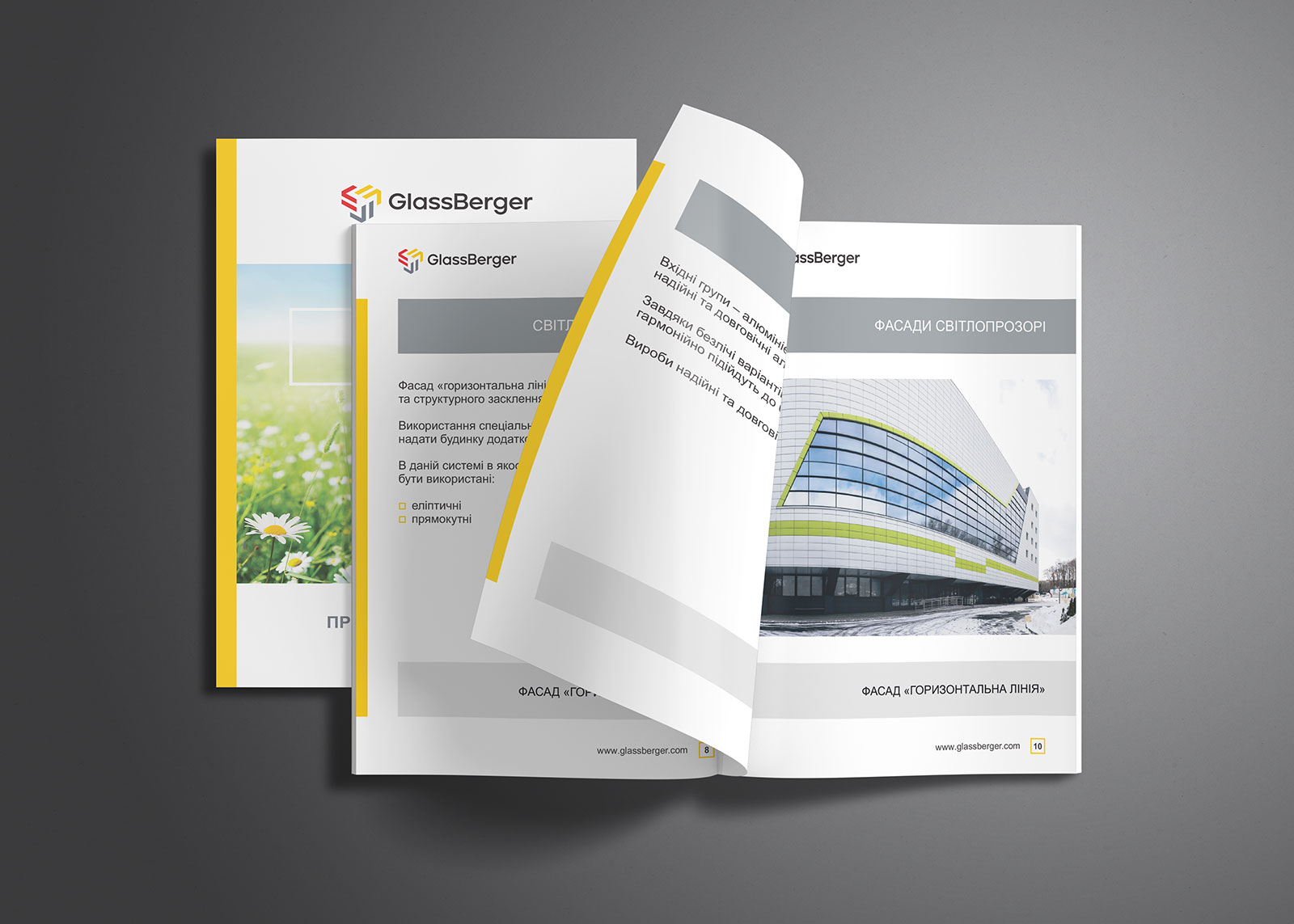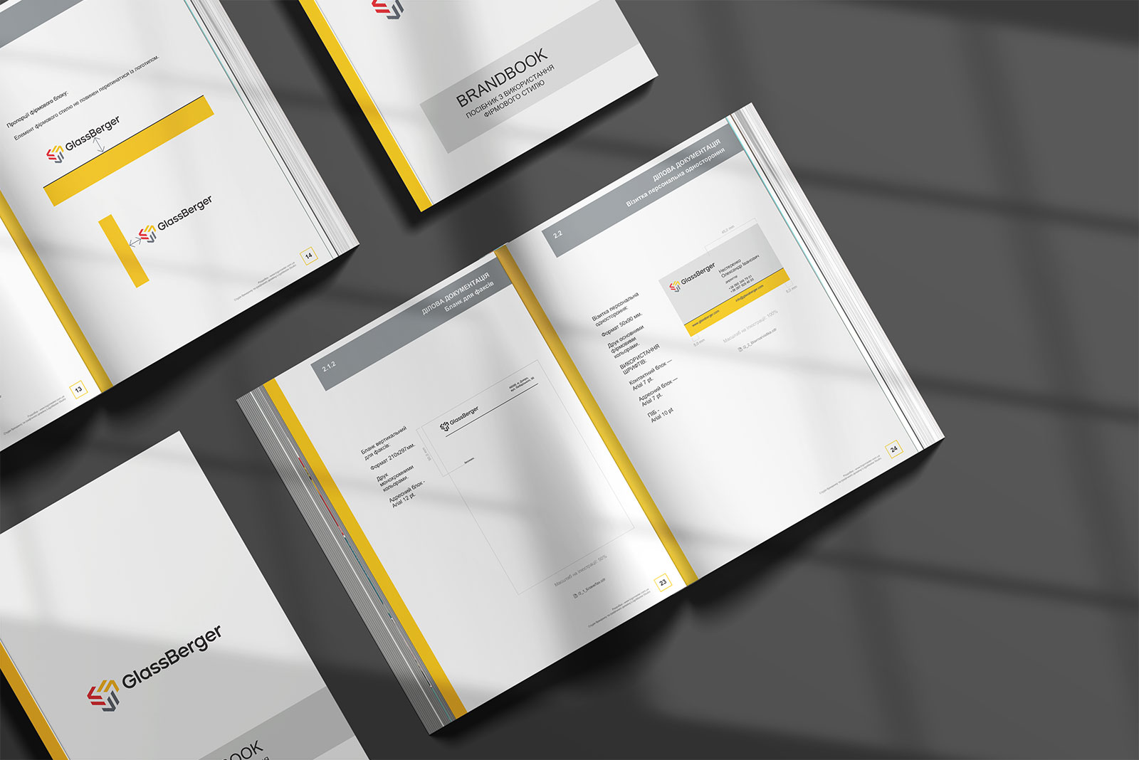 Шрифтовое написание названия “GlassBerger” разработано дизайнерами нашей студии и выполнено в строгом стиле.