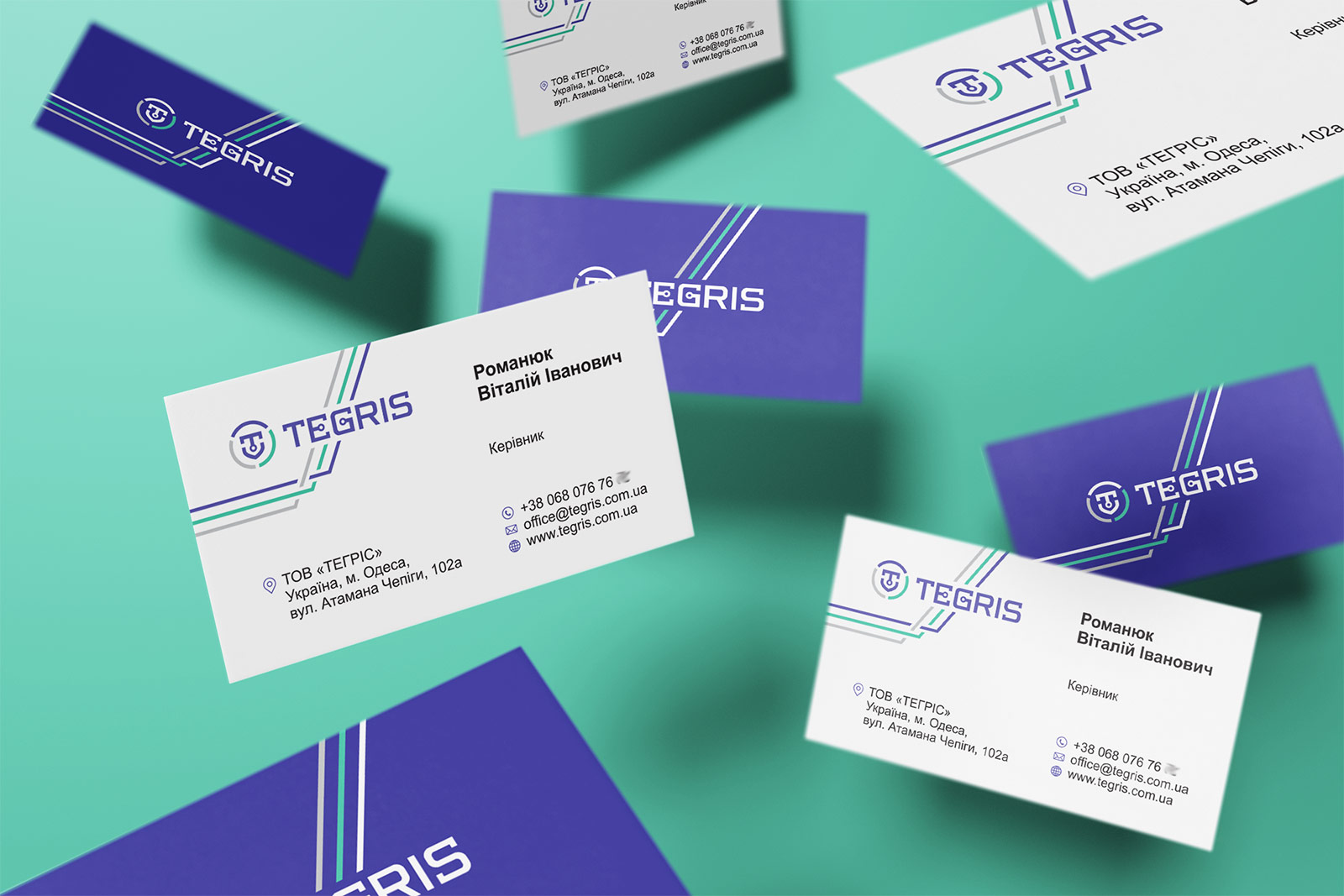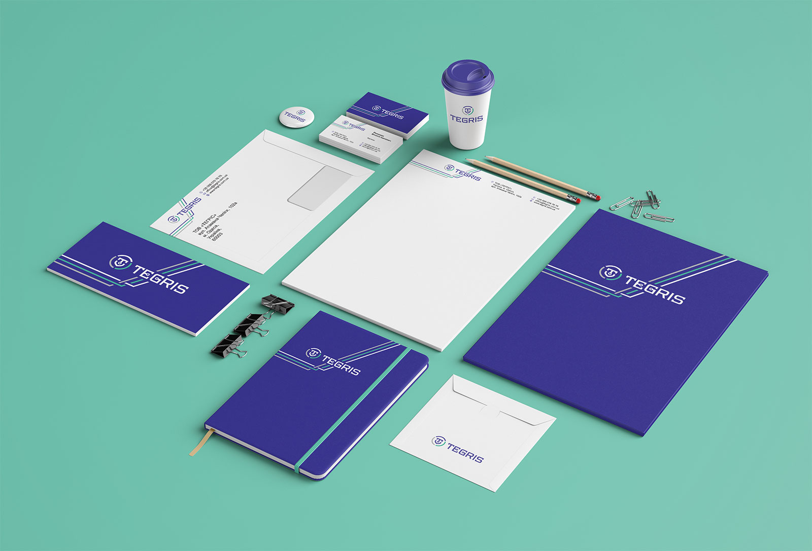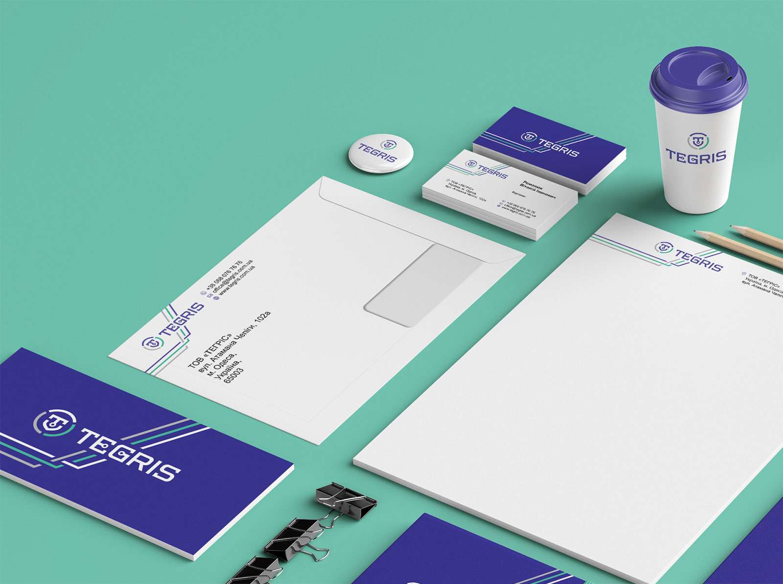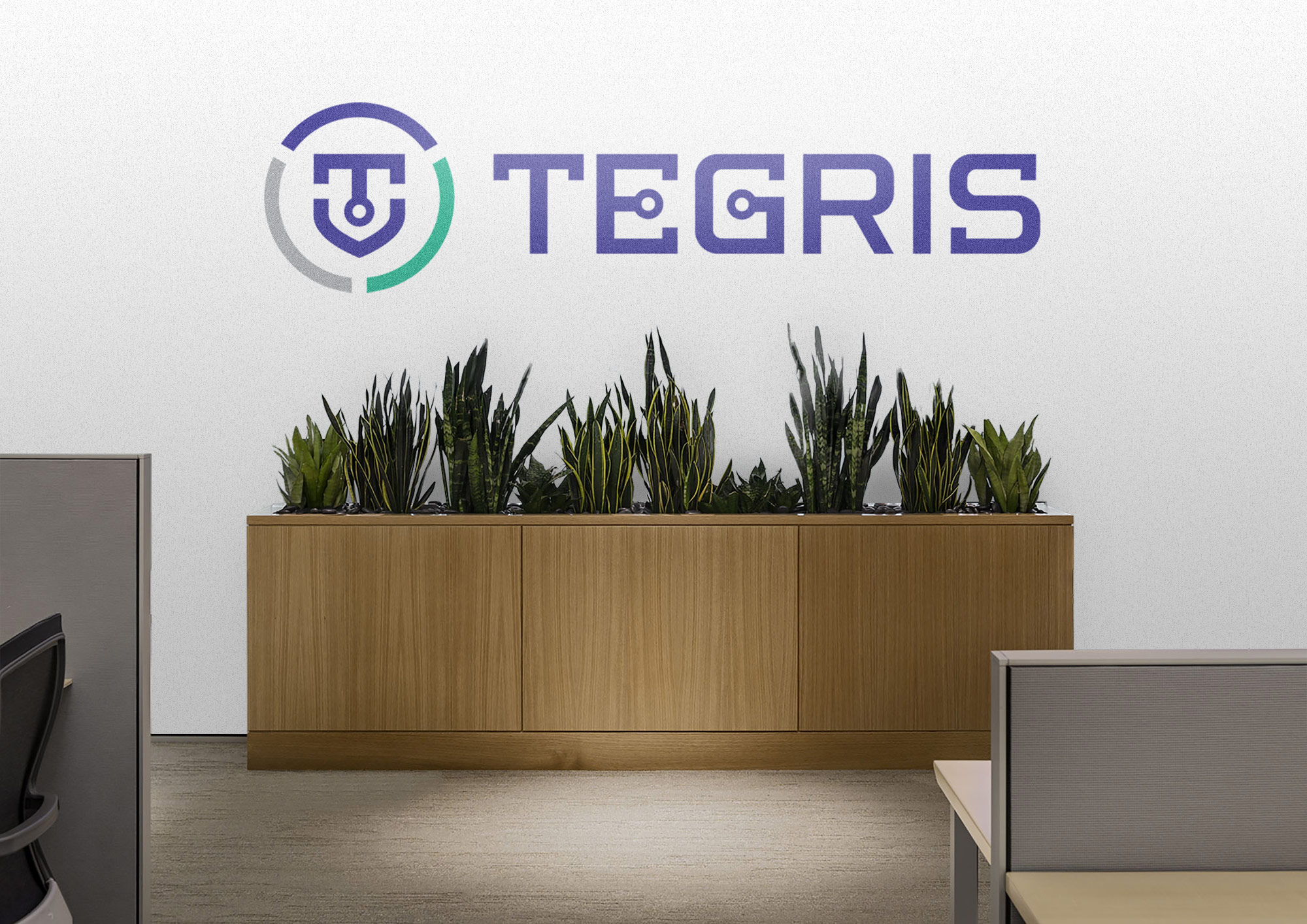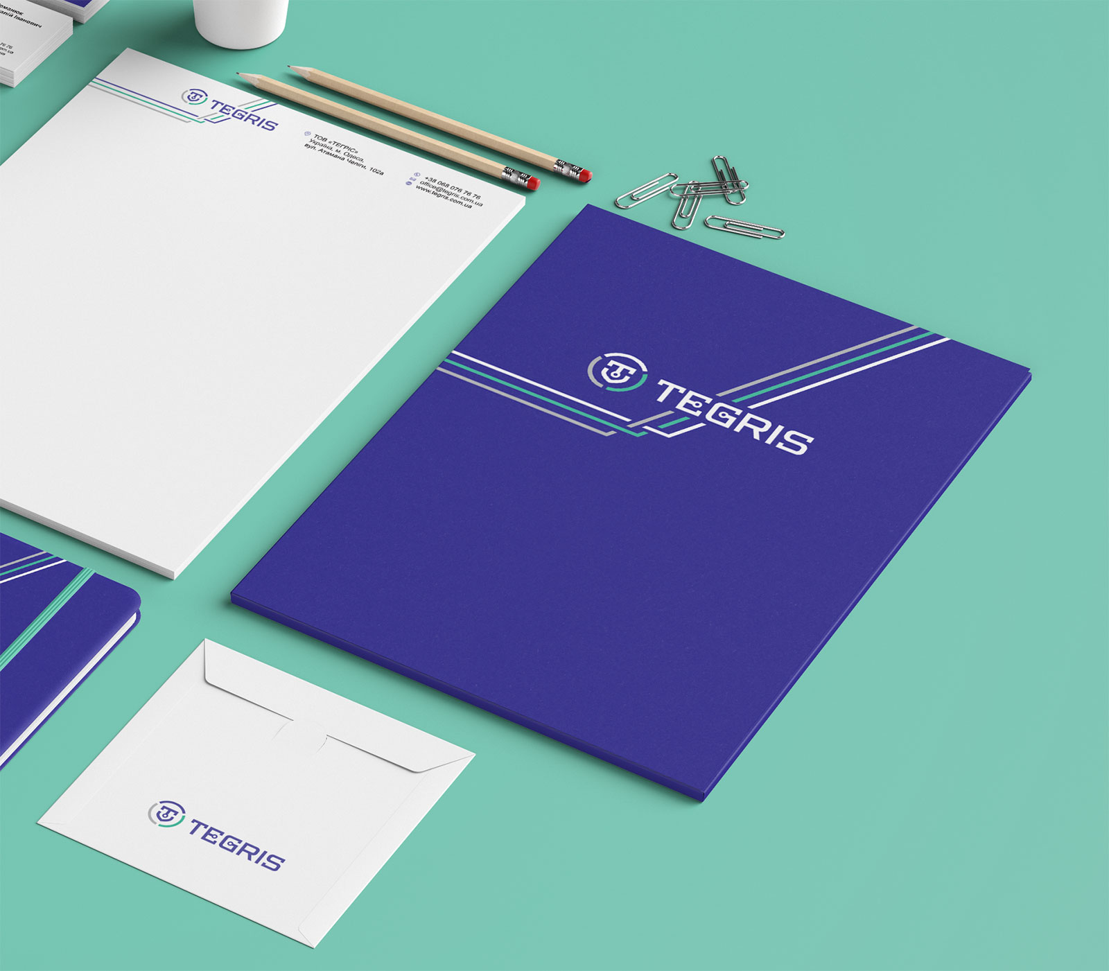 Шрифтовое написание названия “TEGRIS” разработано дизайнерами нашей студии и выполнено в строгом стиле.