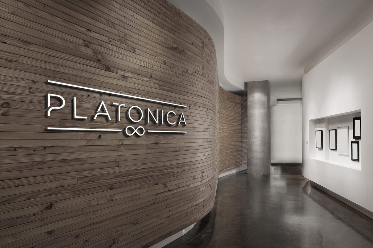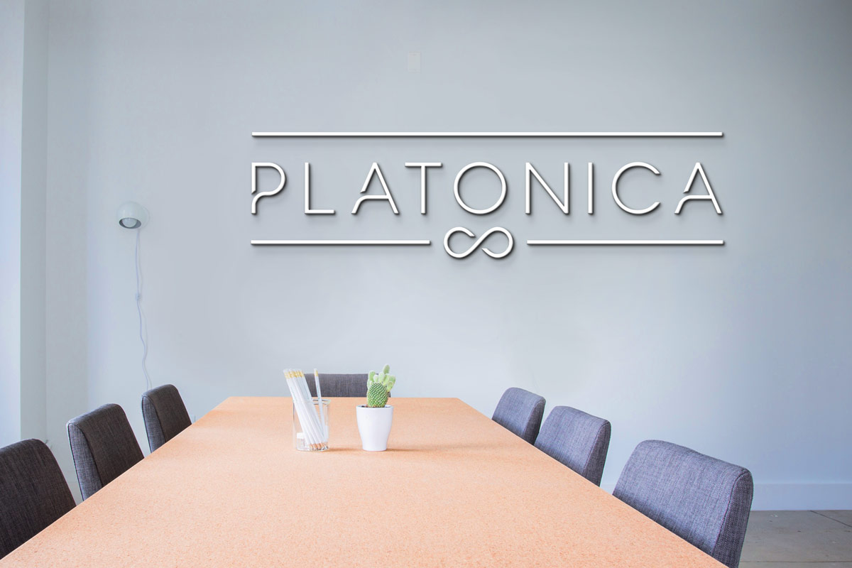 После детального обсуждения различных вариантов Заказчик утвердил нижеприведенный шрифтовой логотип. Черный цвет логотипа отражает строгость и прекрасно сочетается со всеми остальными цветами. Шрифтовое написание названия “PLATONICA” разработано дизайнерами нашей студии.