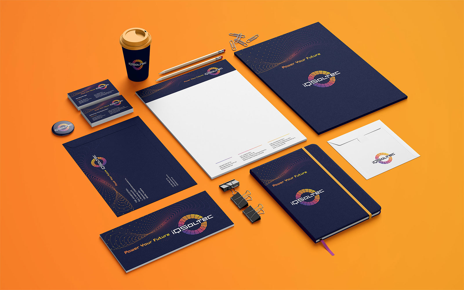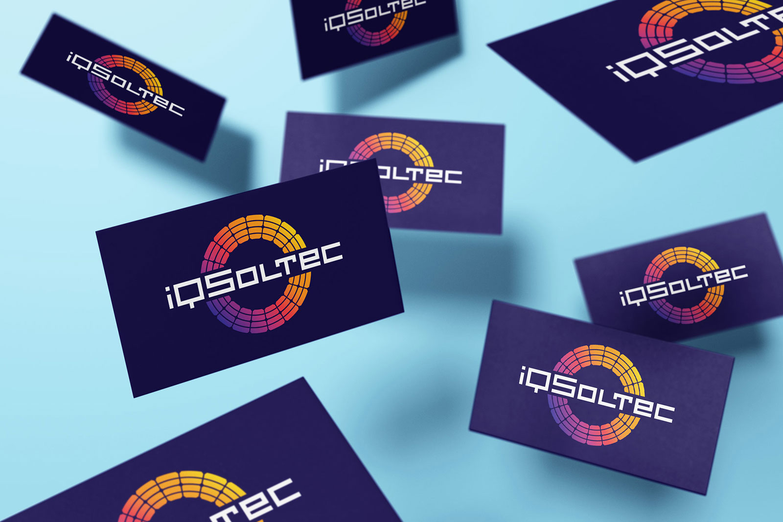 После детального обсуждения различных вариантов Заказчик утвердил нижеприведенный логотип, состоящий из знака в виде круга (отражает солнце) из элементов солнечных панелей. Шрифтовое написание названия "iQSoltec" разработано дизайнерами нашей студии и выполнено в строгом стиле.