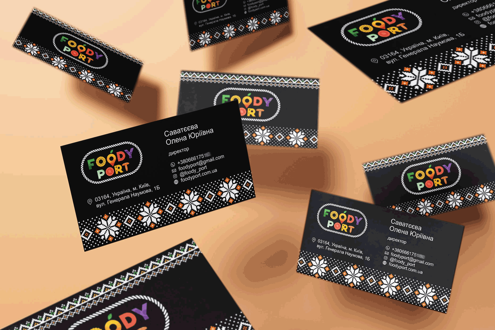 Особое внимание хочется уделить фирменному стилю, который дизайнеры студии проработали достаточно тщательно. В рамках заказа был разработан стандартный набор документов: визитные карточки, пакет, фирменный бланк и прочее. Разработанный фирменный стиль, состоящий из украинского орнамента дополняет логотип, создавая единый и универсальный блок информации.