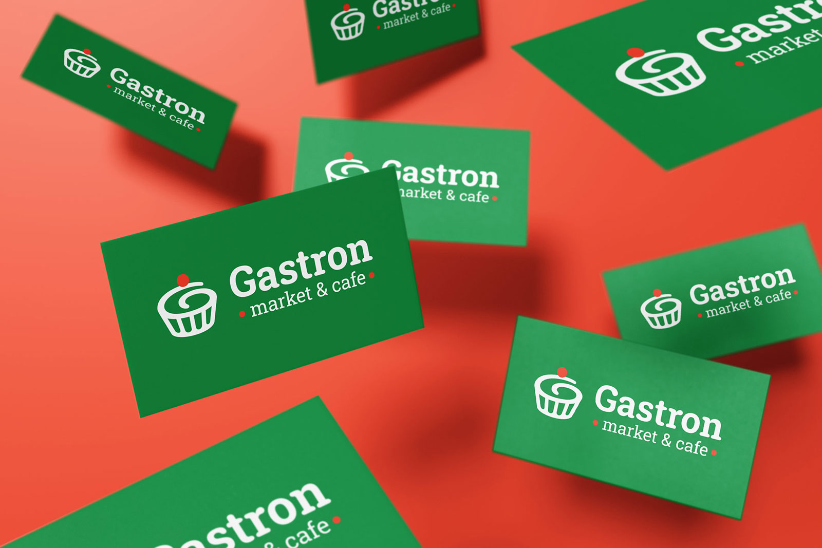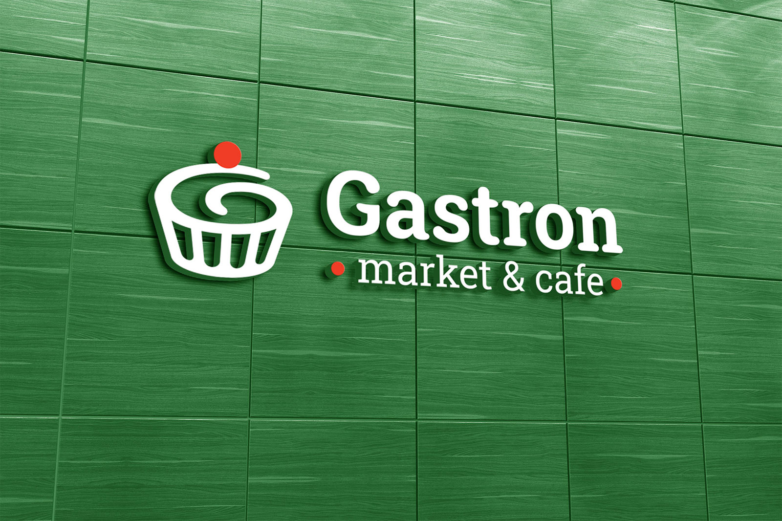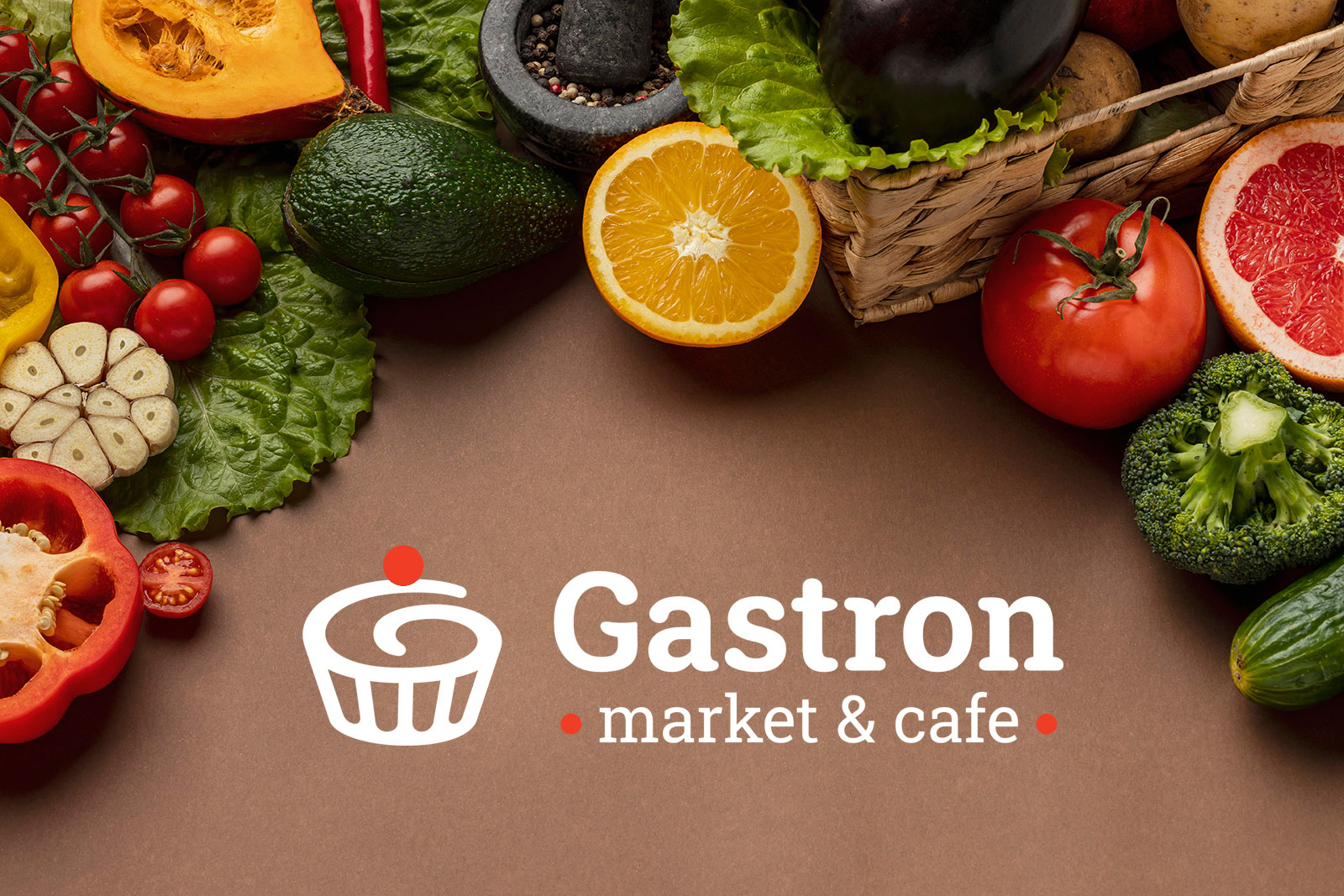 Шрифтовое написание названия "Gastron" разработано дизайнерами нашей студии и выполнено в строгом стиле. Для расшифровки деятельности было принято использовать в логотипе дескриптор “market”.