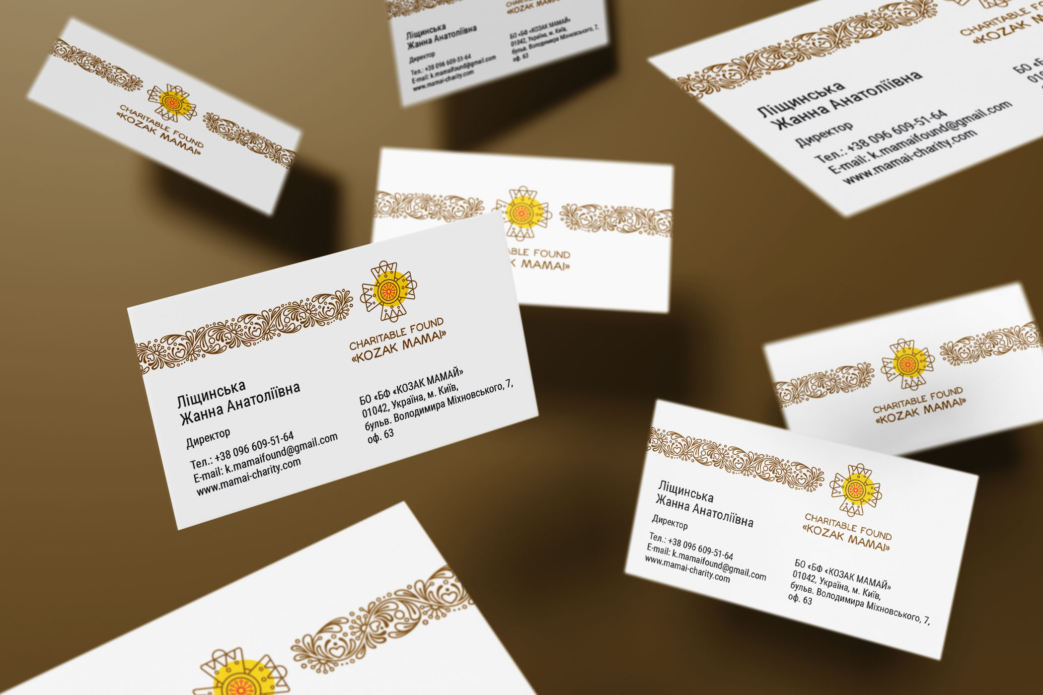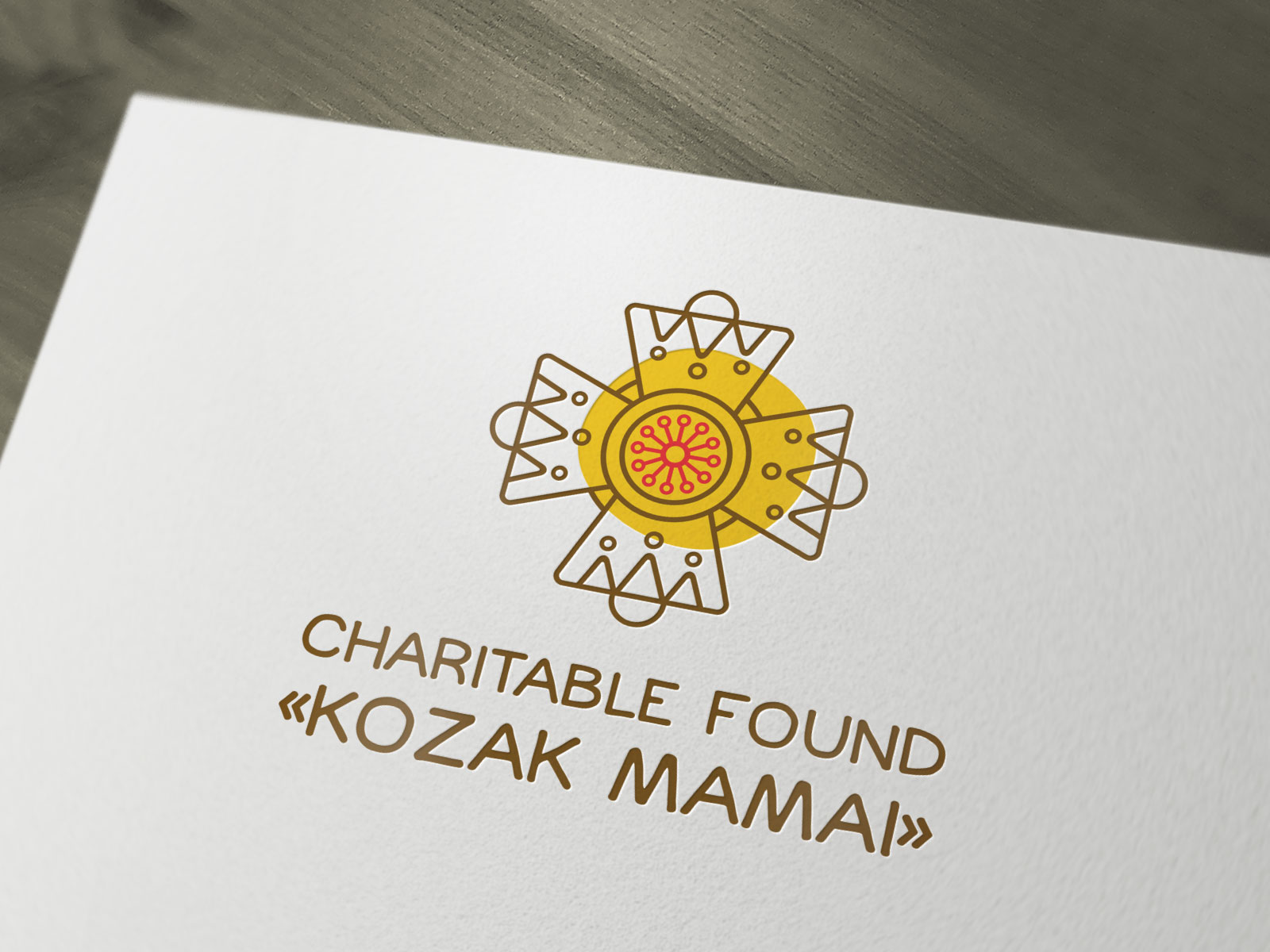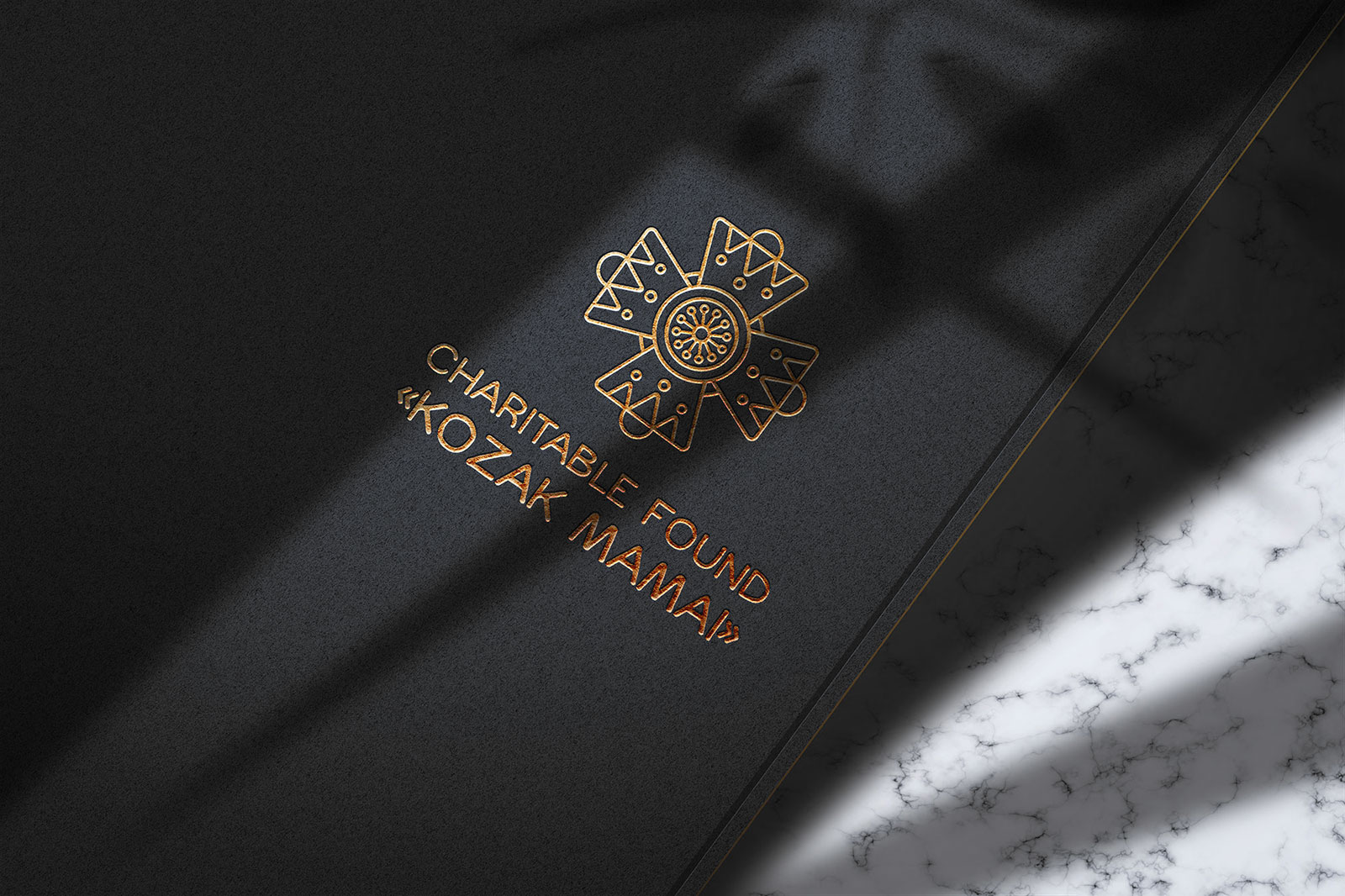 Шрифтовое написание названия "KOZAK MAMAI" было создано дизайнерами нашей студии специально для этого проекта. Он выполнен в сдержанном, уверенном стиле, подчеркивающем серьезность миссии Фонда. Для четкого понимания направления деятельности, к логотипу был добавлен дескриптор "CHARITABLE FUND" - как объяснение и одновременно официальное позиционирование Фонда на международном уровне.