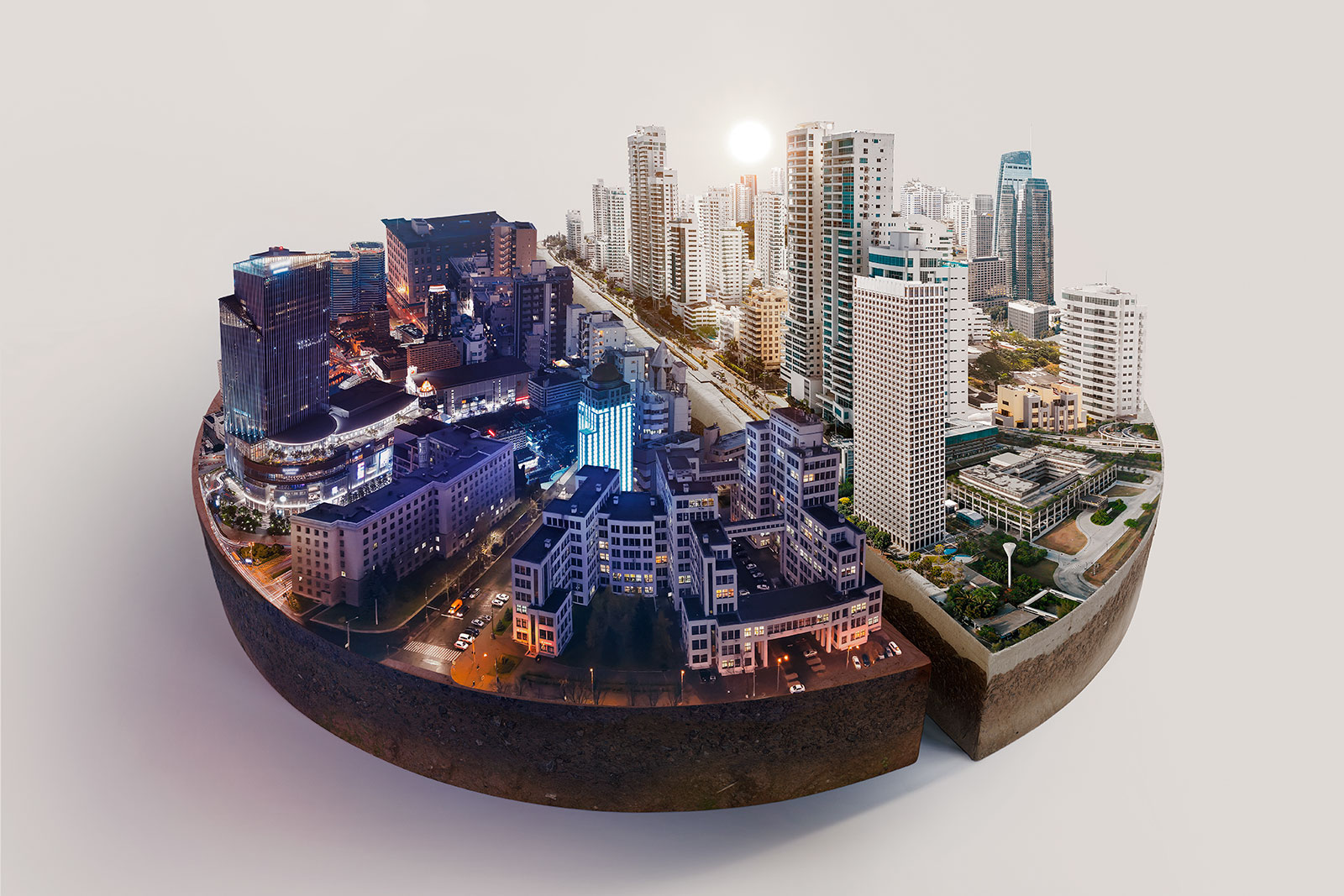 Три здания внутри ленты — это визуальный образ масштаба и последовательности, а также разнообразия проектов, которые реализует компания. Они также символизируют три ключевых направления: строительство жилой недвижимости, коммерческих объектов, развитие инфраструктурных проектов.