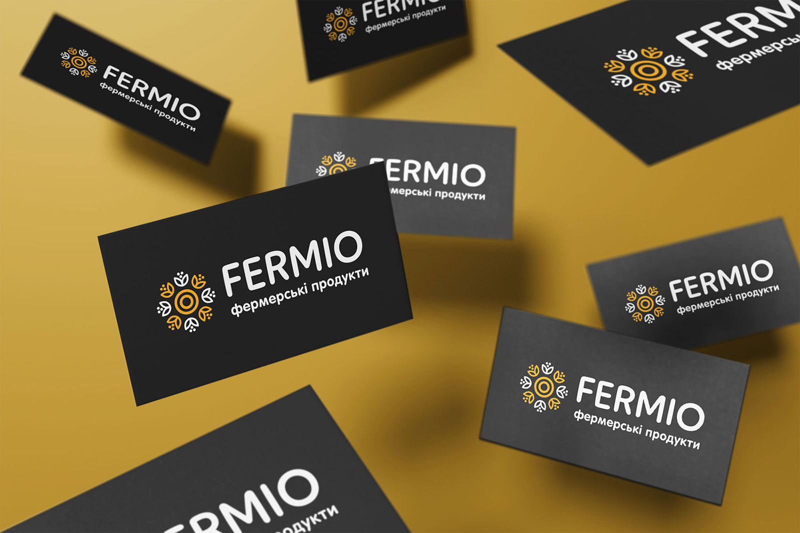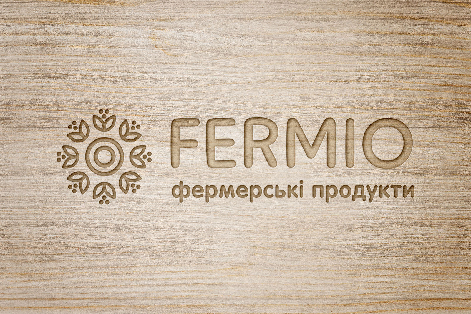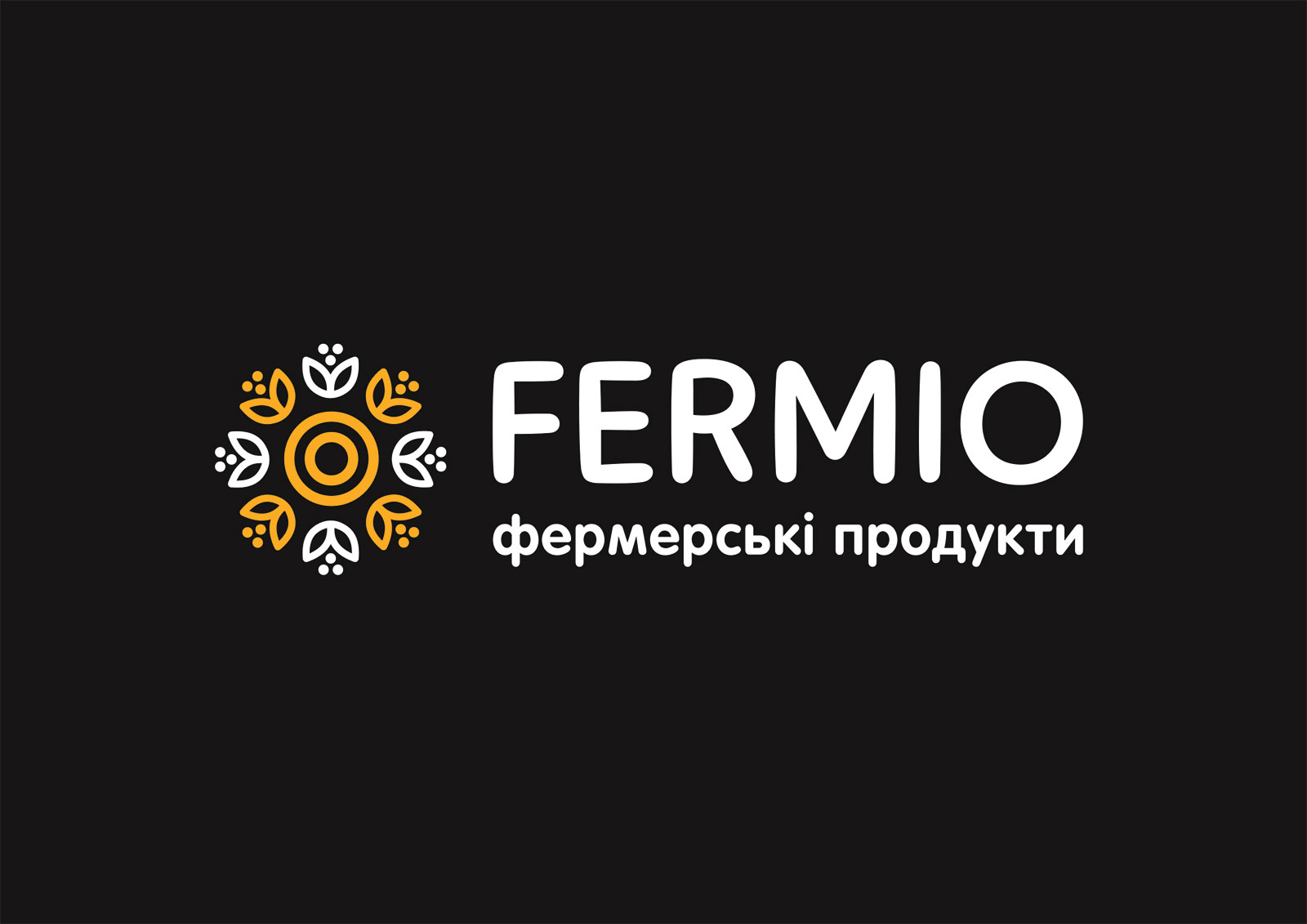 Шрифтовое написание названия «FERMIO» разработано в строгом, но современном стиле, что подчеркивает устойчивость и надежность компании, сохраняя при этом актуальность и динамичность визуального образа. Для большей ясности и идентификации направления деятельности был добавлен дескриптор «фермерські продукти», который помогает сразу донести суть бренда до аудитории.