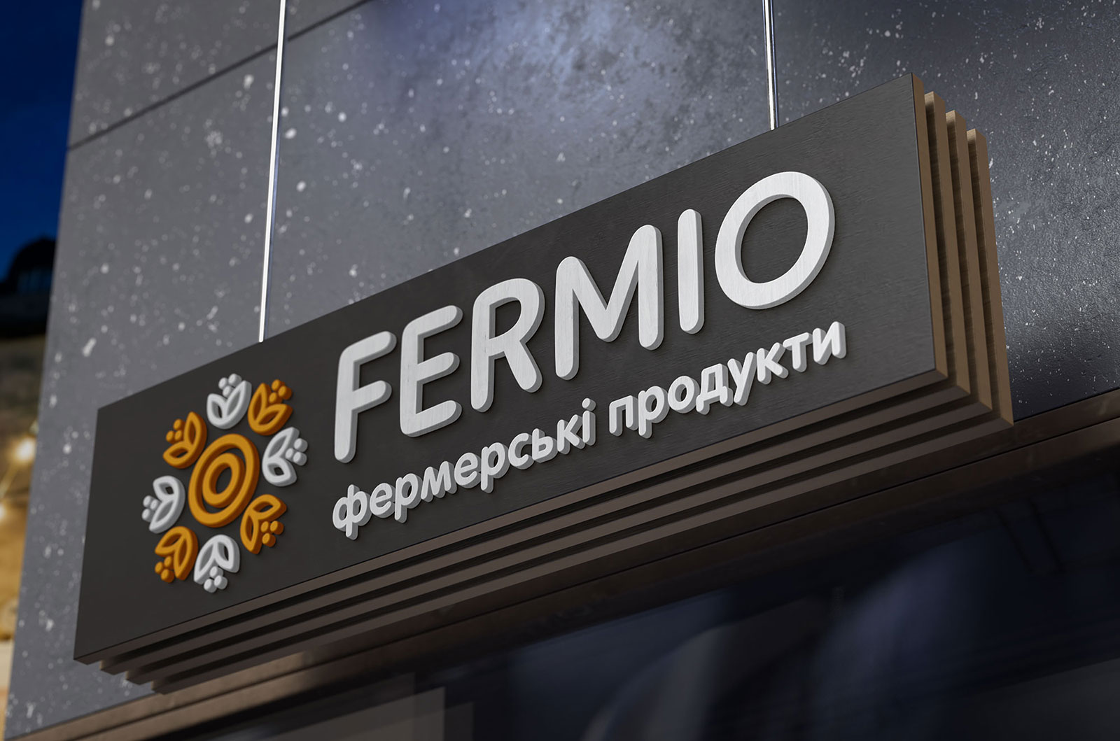 FERMIO – это название минимаркета, которое сочетает в себе ассоциации с фермерскими продуктами и интернациональное звучание, подчеркивая свежесть, натуральность и высокое качество товаров.