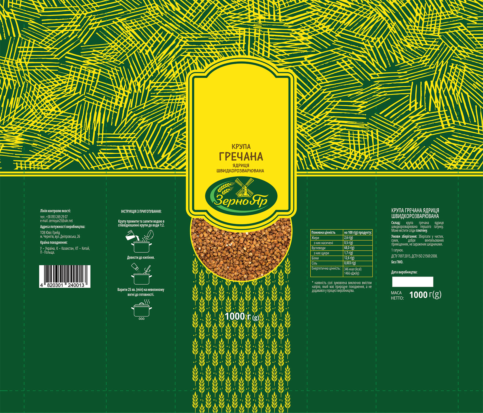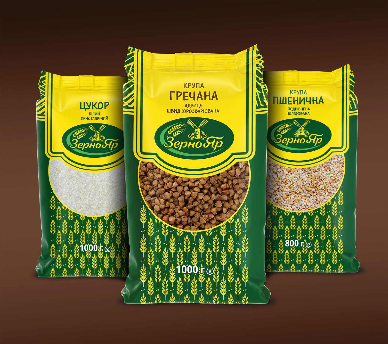 Название бренда «ЗерноЯр» в этом дизайне звучит мощно, основательно и по-украински аутентично.