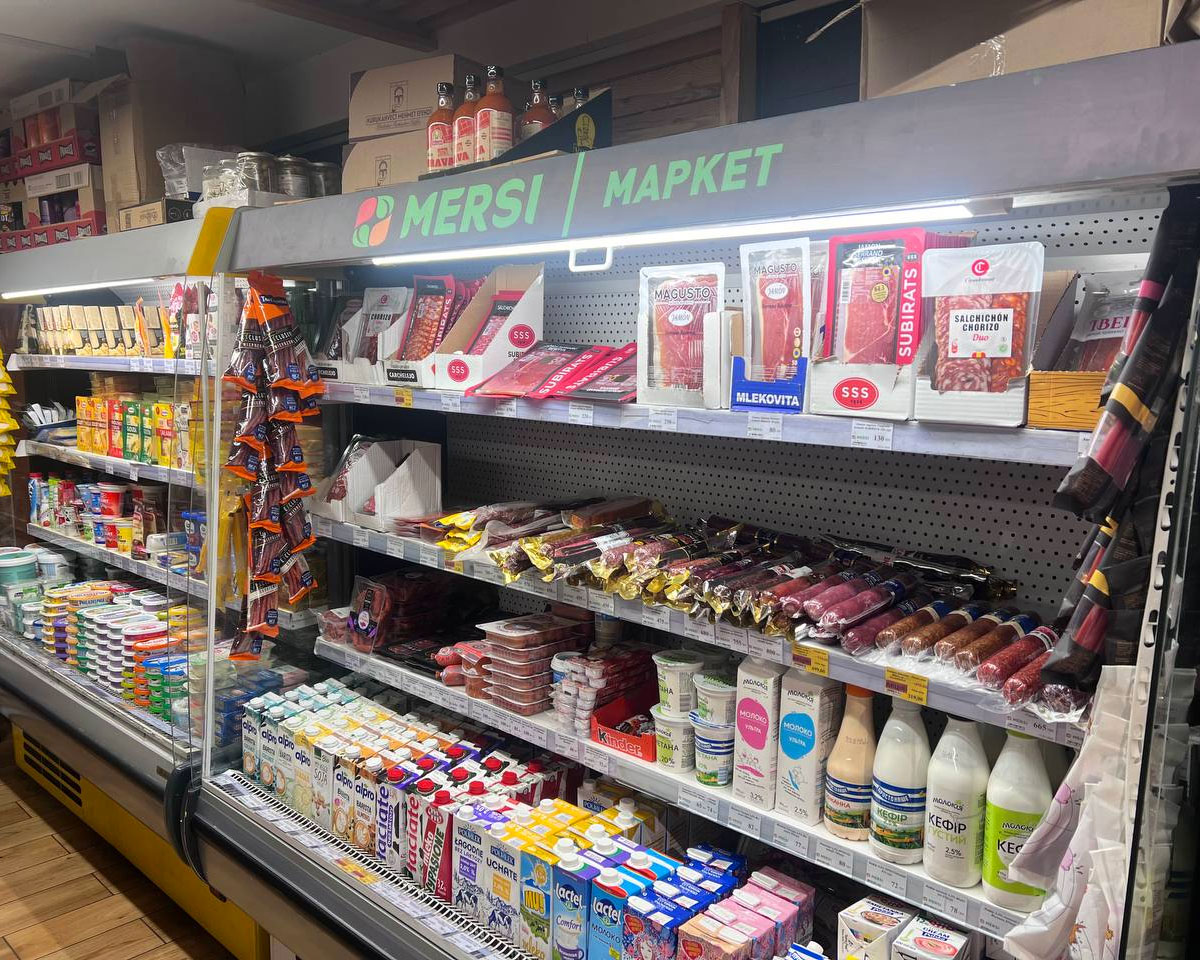 Назва написана так, як чується при вимові і походить від відомого слова MERCI, що відображає подяку - з одного боку магазину, за покупку товару, а з іншого боку - висловлює розташування покупця: велике Вам спасибі за якісні та завжди свіжі товари!