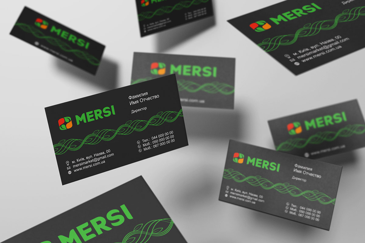 Шрифтове написання назви “MERSI” розроблено дизайнерами нашої студії та виконане у строгому стилі.