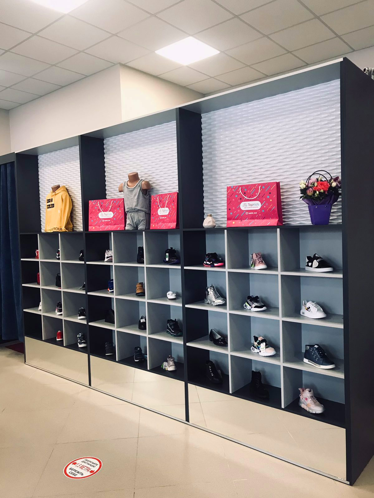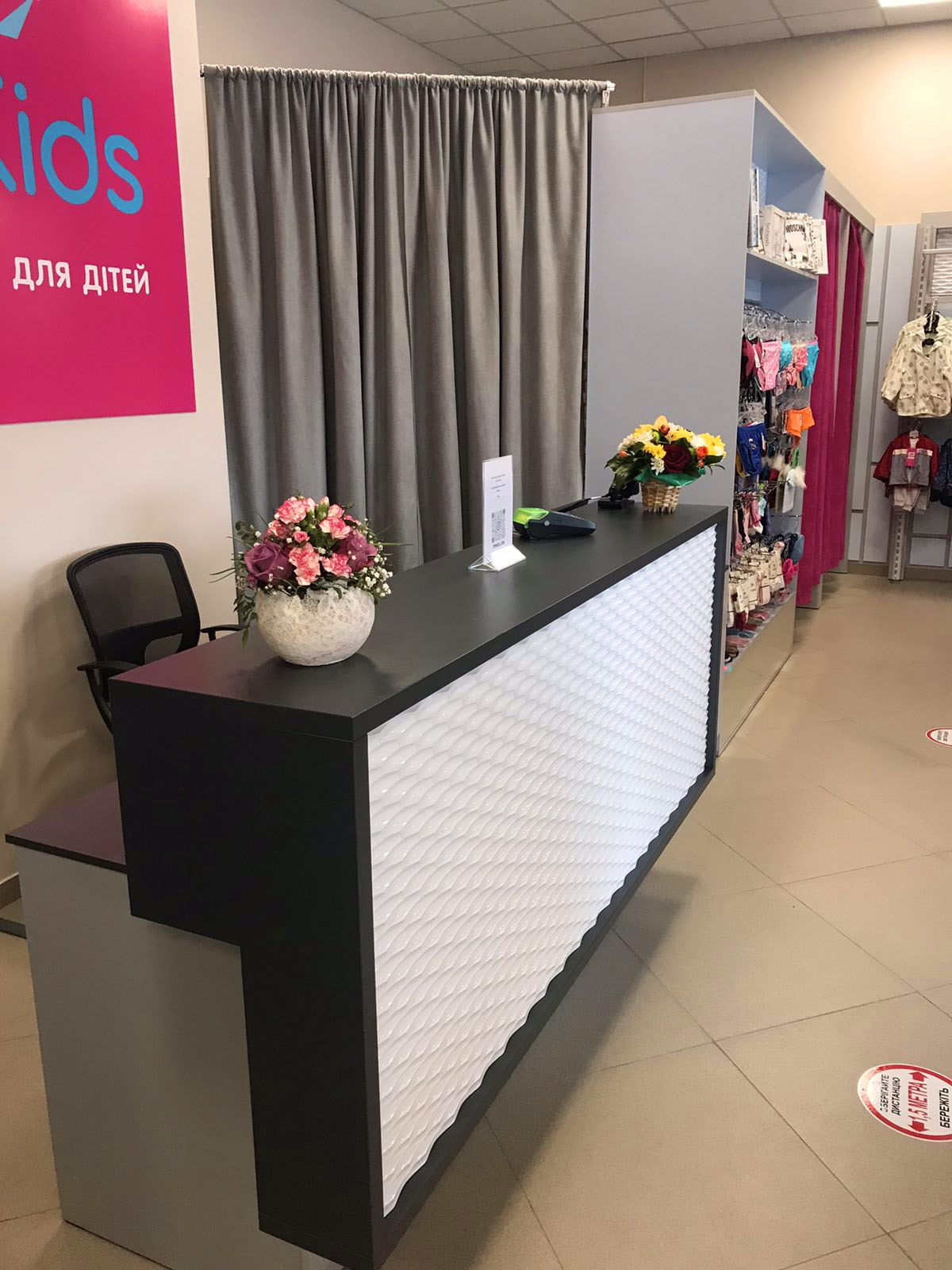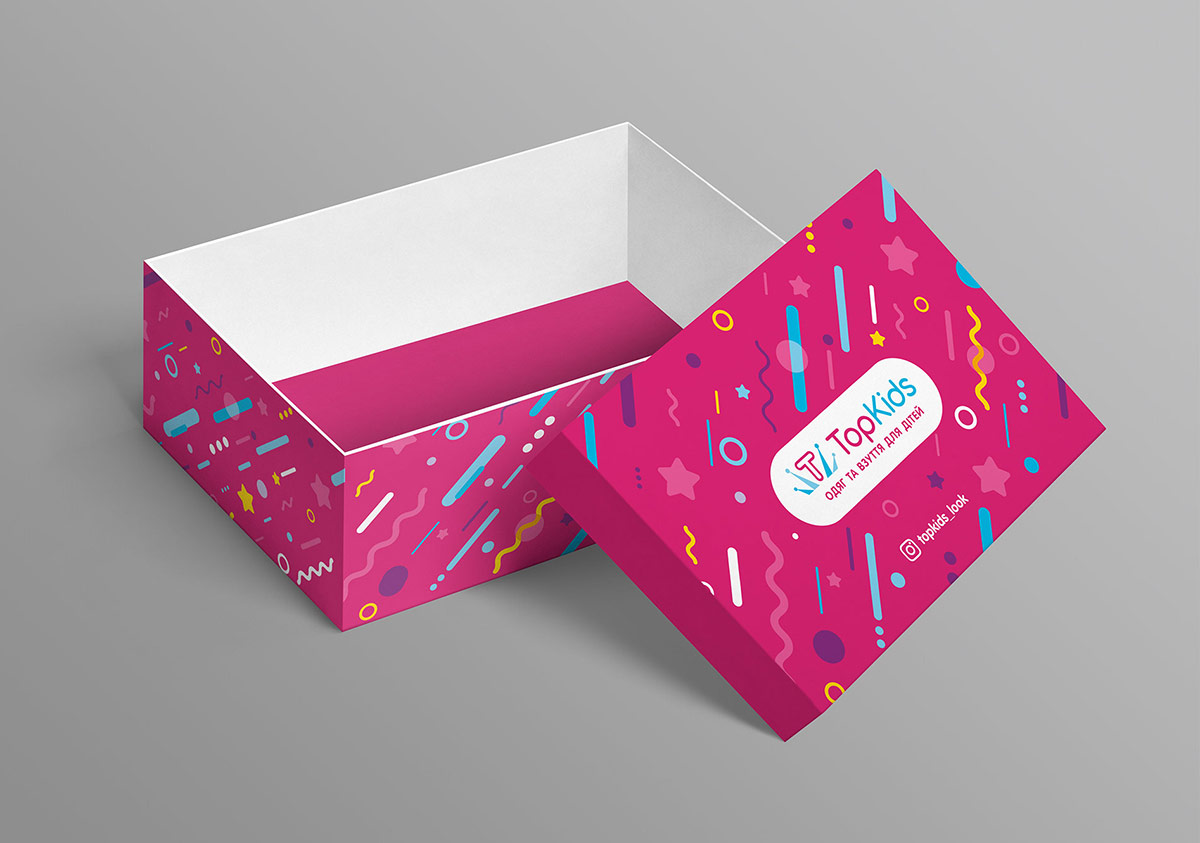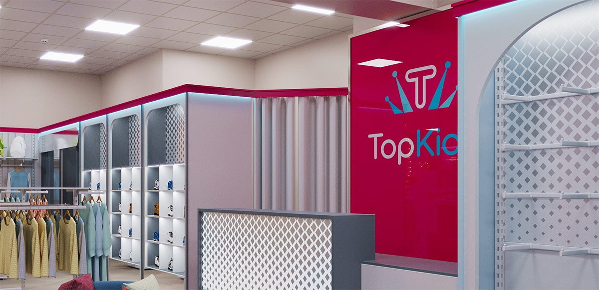 Розроблений логотип виконаний у вигляді знака в якому зображена буква Т та відкрита корона, яка підкреслює високу якість товару в магазині. Шрифтове написання назви “TopKids” розроблено дизайнерами нашої студії та виконане у строгому стилі. Для розшифровки діяльності було прийнято використовувати в логотипі дескриптор “ОДЯГА ТА ВЗУТТЯ ДЛЯ ДІТЕЙ”.